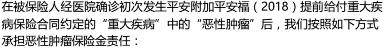 也就是說(shuō),無(wú)論第一次診斷是惡性腫瘤還是非惡性腫瘤,癌癥的附加險(xiǎn)有效。