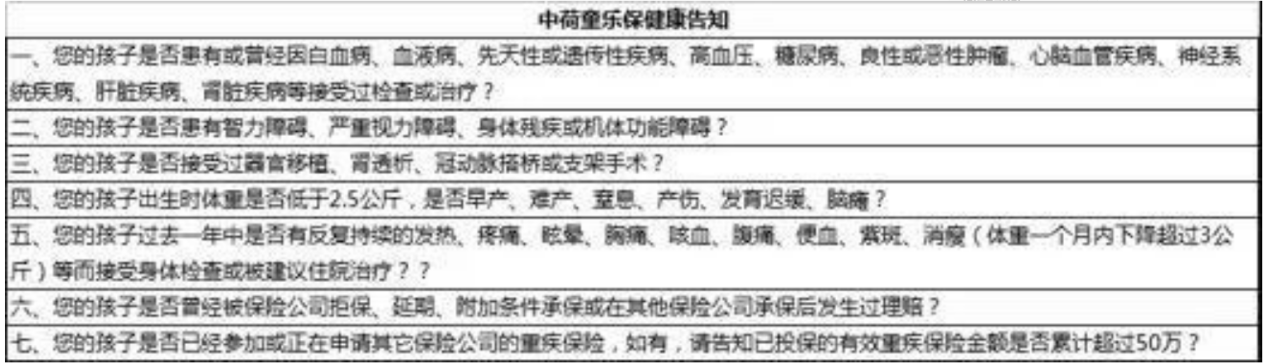 中荷童樂保的健康告知仍然松散,基本上不是早產兒,一年內沒住過院不會中招?;圮鞍惨彩沁@個要求。