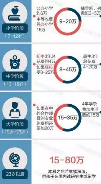 從上圖可以看出,隨著孩子的成長(zhǎng),家庭需要支付的教育費(fèi)用將高速增長(zhǎng)。如果沒(méi)有提前計(jì)劃,對(duì)家庭來(lái)說(shuō)將是一個(gè)沉重的壓力。