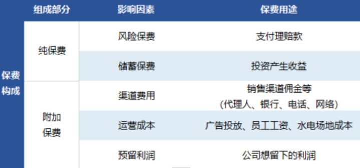 從上圖可以看出,我們交給保險(xiǎn)公司的保費(fèi)可以分為兩大類:
