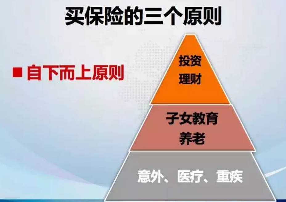 購買保險(xiǎn)時(shí),“自下而上”原則回答了“如何購買”的問題。我們說“高層建筑是平地起的”,事實(shí)上,購買保險(xiǎn)就像建造一座高層建筑,基礎(chǔ)必須堅(jiān)定。如果基礎(chǔ)不堅(jiān)固,頂部建造得更好,裝修更豪華,有小地震就會(huì)坍塌。