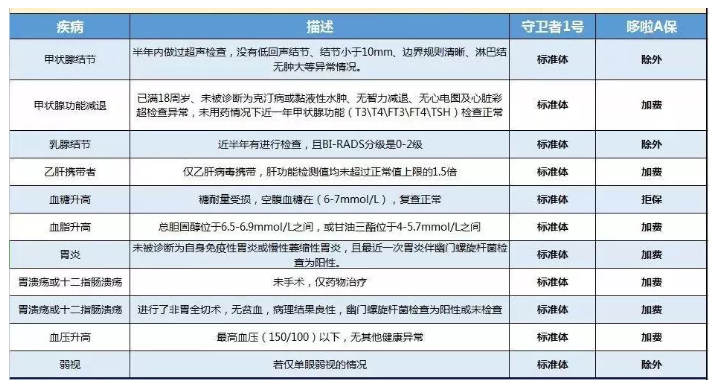 豁免保障 +智能核保 +預(yù)核保在豁免保障,守衛(wèi)者1號(hào)可選保險(xiǎn)豁免,輕癥 / 中癥 / 重疾 /死亡/總殘疾,可以保護(hù)所有,說360°無死角。雖然,保障責(zé)任不包含中癥保障,但已經(jīng)在保險(xiǎn)豁免條款中達(dá)成一致,一旦遭遇20種中癥疾病,豁免后期保費(fèi)。真棒!但是,應(yīng)該注意的是,被保險(xiǎn)人豁免暫時(shí)只對(duì)未成年人開放,也就是說,只有父母可以為孩子投保,如果他們想要互相保護(hù),他們必須等待。讓我們來談?wù)勊闹悄芎吮?,守衛(wèi)者1號(hào)的智能核保相對(duì)寬松。如果身體有小問題,如甲狀腺結(jié)節(jié)、乳腺結(jié)節(jié)、乙型肝炎攜帶者,即使是輕微的三高人口也可以正常購買。