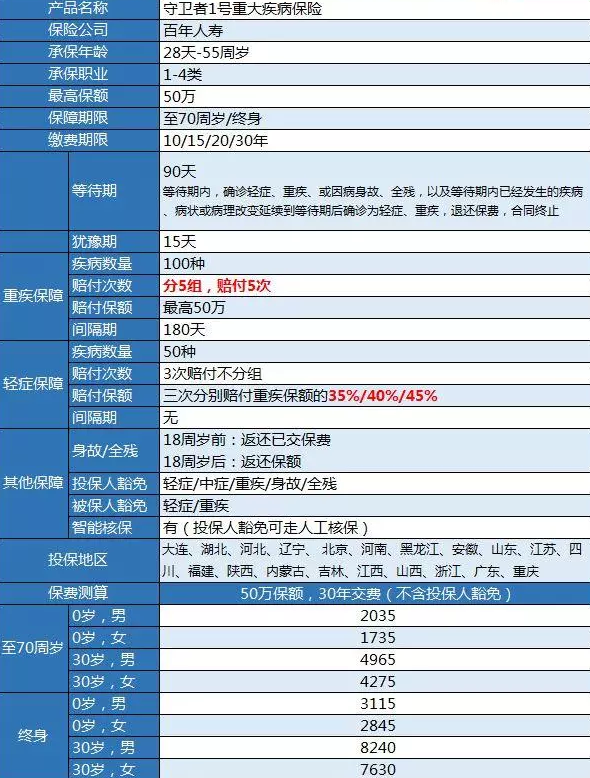 百年人壽守衛(wèi)者1號(hào)多次賠付重疾險(xiǎn)怎么樣