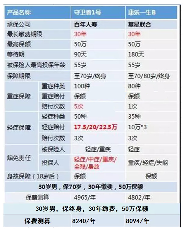 一個重疾多次賠,一個重疾一次賠;一個輕癥保額賠付高,一個輕癥保額少,而保費只相差200元,此時應(yīng)該給守護(hù)者1號一些掌聲!