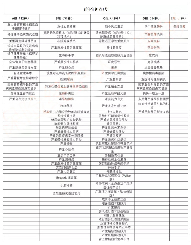 所以要獲得多次賠付保額,重疾分組非常重要,讓我們看看守衛(wèi)者1號是如何分組: