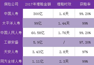 我們來看看2017年保險公司的理賠數(shù)據(jù)