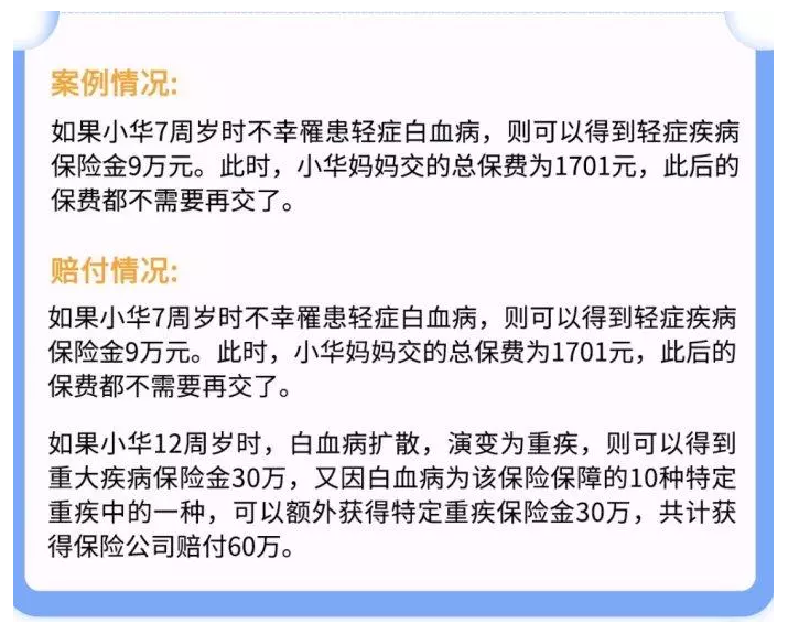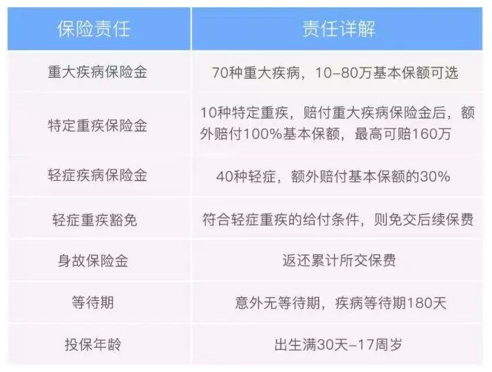40種輕癥,賠付30%保額,最高可以賠付24萬,而且還免除了后續(xù)保費,更加人性化。